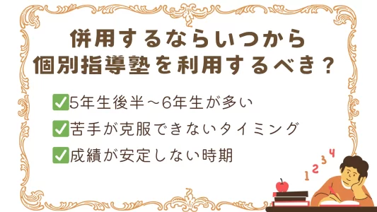 個別指導塾をいつから併用したら良いかは人それぞれですが、参考までにスタートするタイミングの目安をあげてみました。