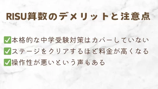 この記事ではRISU算数の教材の特長、利用者の口コミ・評判、実績、デメリットと注意点、おすすめな人などをまとめました。中学受験準備にRISU算数をご検討中の方はぜひ参考にしてください。