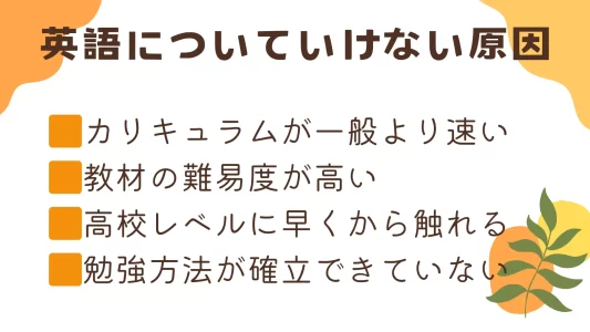 中高一貫校で英語についていけなくなる原因は、単に勉強不足だけではありません。中高一貫校独自のカリキュラムが英語学習のハードルを高くしているケースもあります。英語に苦手意識を持つ主な原因を見ていきましょう。