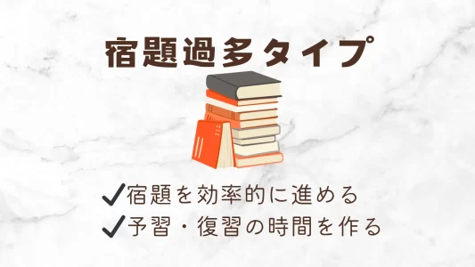 🟧宿題で手いっぱいになり、理解につながる勉強ができていない⇒宿題過多タイプ
