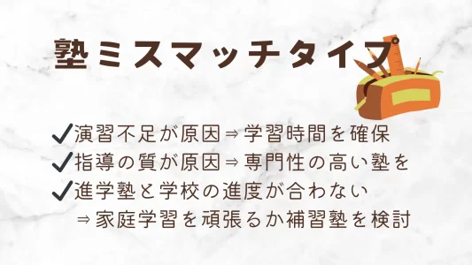 🟧塾に通っているが成績が上がらない⇒塾ミスマッチタイプ