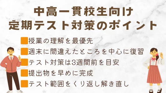 中高一貫校生向けの定期テスト対策のポイントをまとめました。