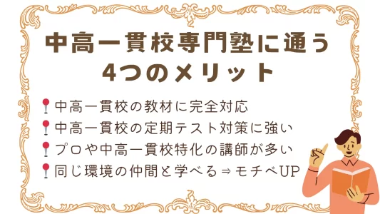 中高一貫校専門塾を利用する主なメリットとして、次の4点があげられます。