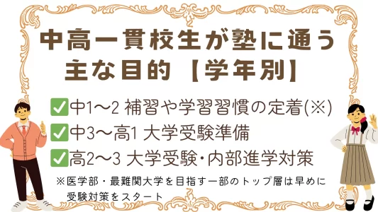 中高一貫校生が塾に通う主な目的を学年ごとにまとめました。