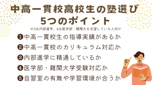 中高一貫校高校生が塾を選ぶ際、特に大事な5つのポイントをまとめました。