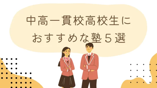 中高一貫校では学校の進みが速いため、一般的な高校生向けの指導カリキュラムと相性が悪い場合があります。中高一貫校生向けのカリキュラムを提供している予備校や、学校の進度に合わせて大学受験や定期テスト対策が行える塾がおすすめです。