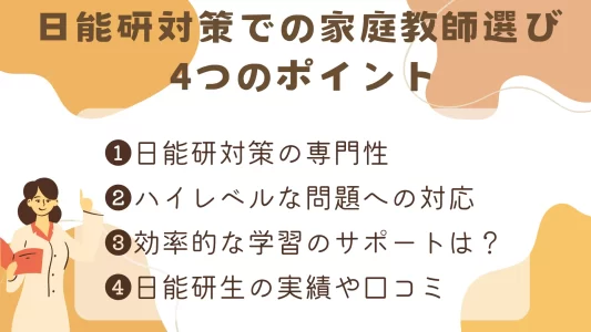 日能研との併用目的で家庭教師を選ぶ際、確認しておきたい4つのポイントをまとめました。