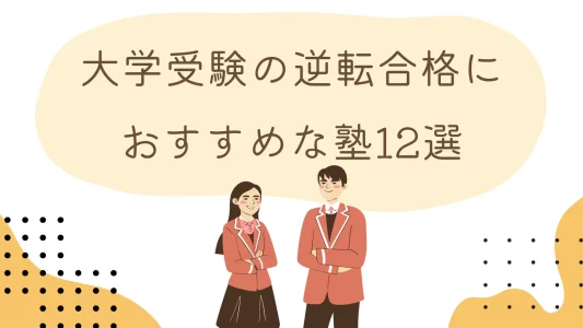 そこで本記事では逆転合格に強い、大学受験におすすめの塾12選をタイプ別に紹介、全国的に展開している塾からオンライン対応の塾、難関大や医学部、早慶に特化した専門塾まで幅広くピックアップしました。逆転合格の塾選びのポイントについてもまとめています。