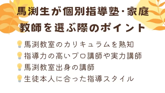 馬渕生が個別指導塾・家庭教師を選ぶ際のポイント