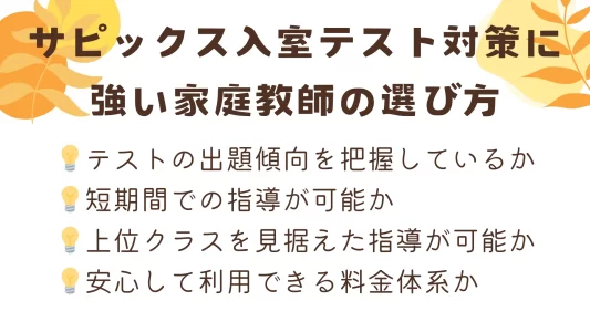 サピックス入室テスト対策で家庭教師を選ぶポイントを整理しました。