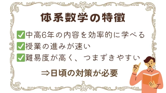 体系数学は進みが速く学習内容が濃いため、難しいと感じる人も多いですが、要点を押さえた学習を続ければ十分に克服できます。