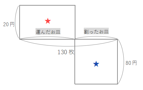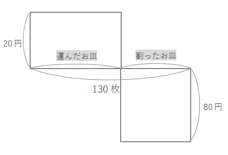 割らずに運べたら20円、割ったら80円弁償、合わせて130枚なので、下の図のように表すことができます。