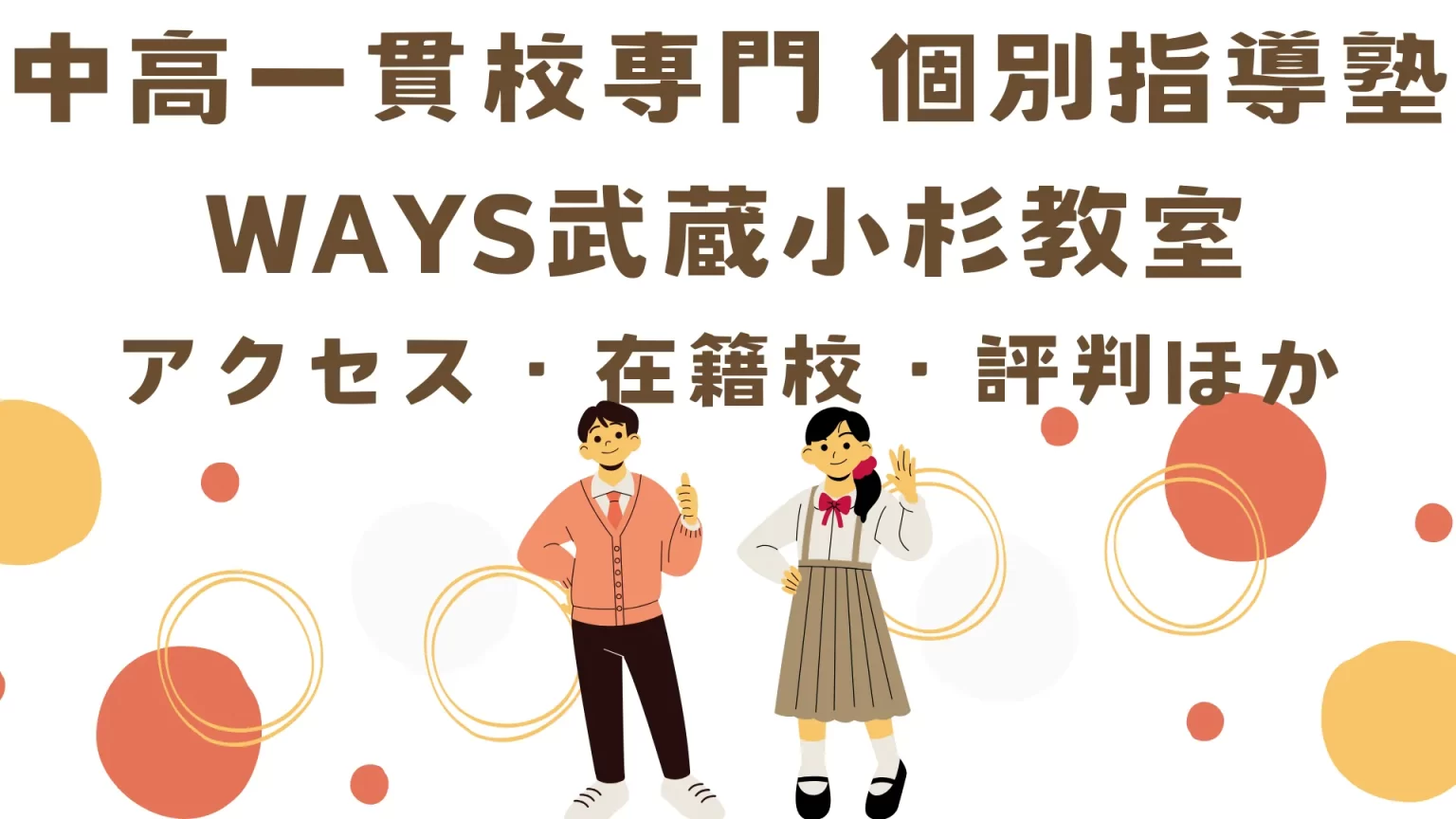 特にWAYS武蔵小杉教室をご検討中の方に、この記事ではWAYSの特徴をお伝えするとともに、武蔵小杉教室のアクセス、通塾生の学校、指導内容、WAYSの評判とおすすめな人などをまとめています。