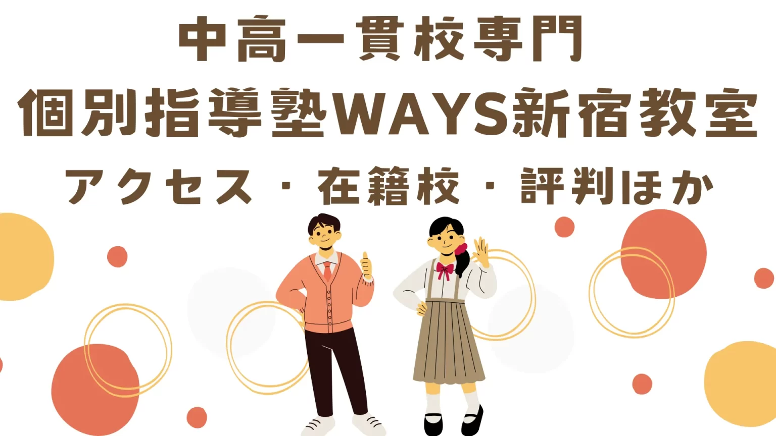 特にWAYS新宿教室をご検討中の方に、この記事ではWAYSの特徴をお伝えするとともに、新宿教室のアクセス、通塾生の学校、指導内容、新宿教室その他の評判、WAYSがおすすめな人などをまとめています。