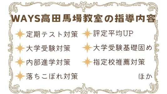 ※出典:中高一貫校専門 個別指導塾WAYS公式サイト(https://ways-sch.jp/class/takadanobaba)